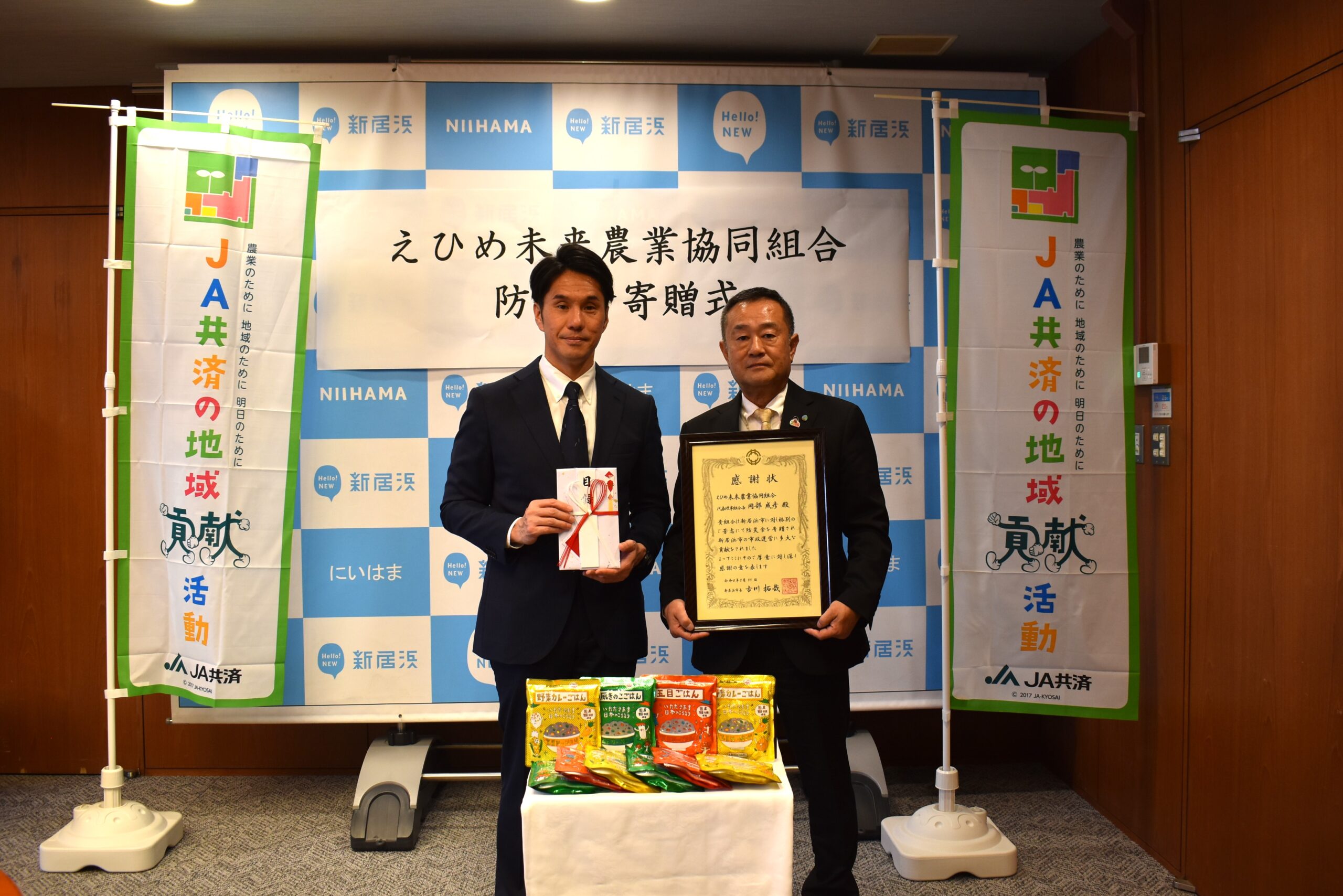 新居浜市へ長期保存食(防災食)1,200食を寄贈