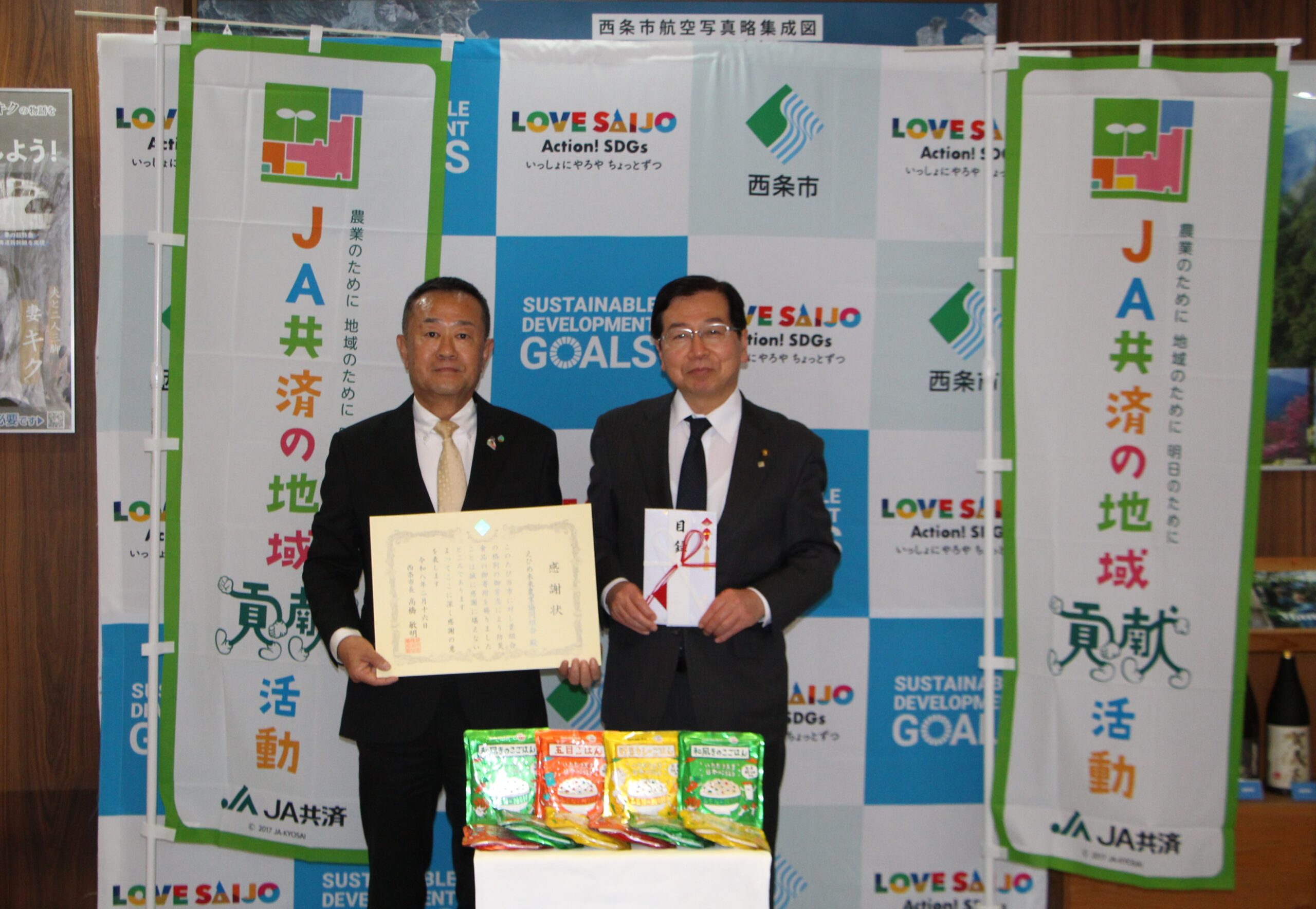西条市へ長期保存食(防災食)1,200食を寄贈