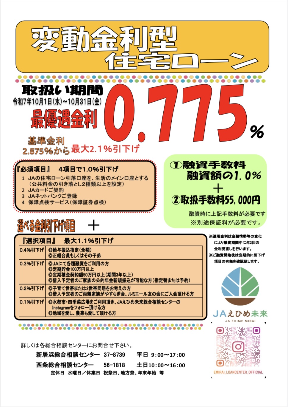 西条総合相談センター 愛媛県西条市神拝甲478-1 FAX 0897-56-1840 定休日:水曜・祝日・年末年始・地方祭 ※土日の祝日も含む |