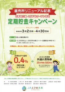 3/2~4/30 直売所リニューアル記念 定期貯金キャンペーン