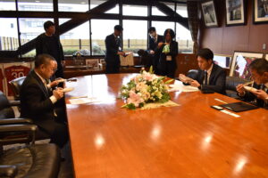 本寄贈に伴い、令和8年2月25日(水)、新居浜市役所にて防災食寄贈式が執り行われました。