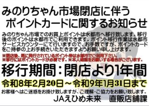 みのりちゃん市場閉店に伴うポイントカードに関するお知らせ